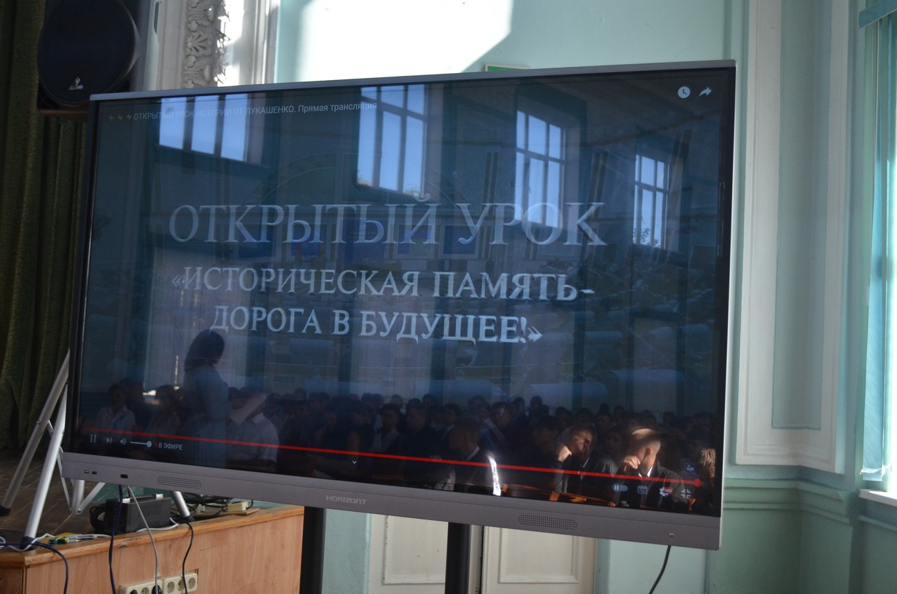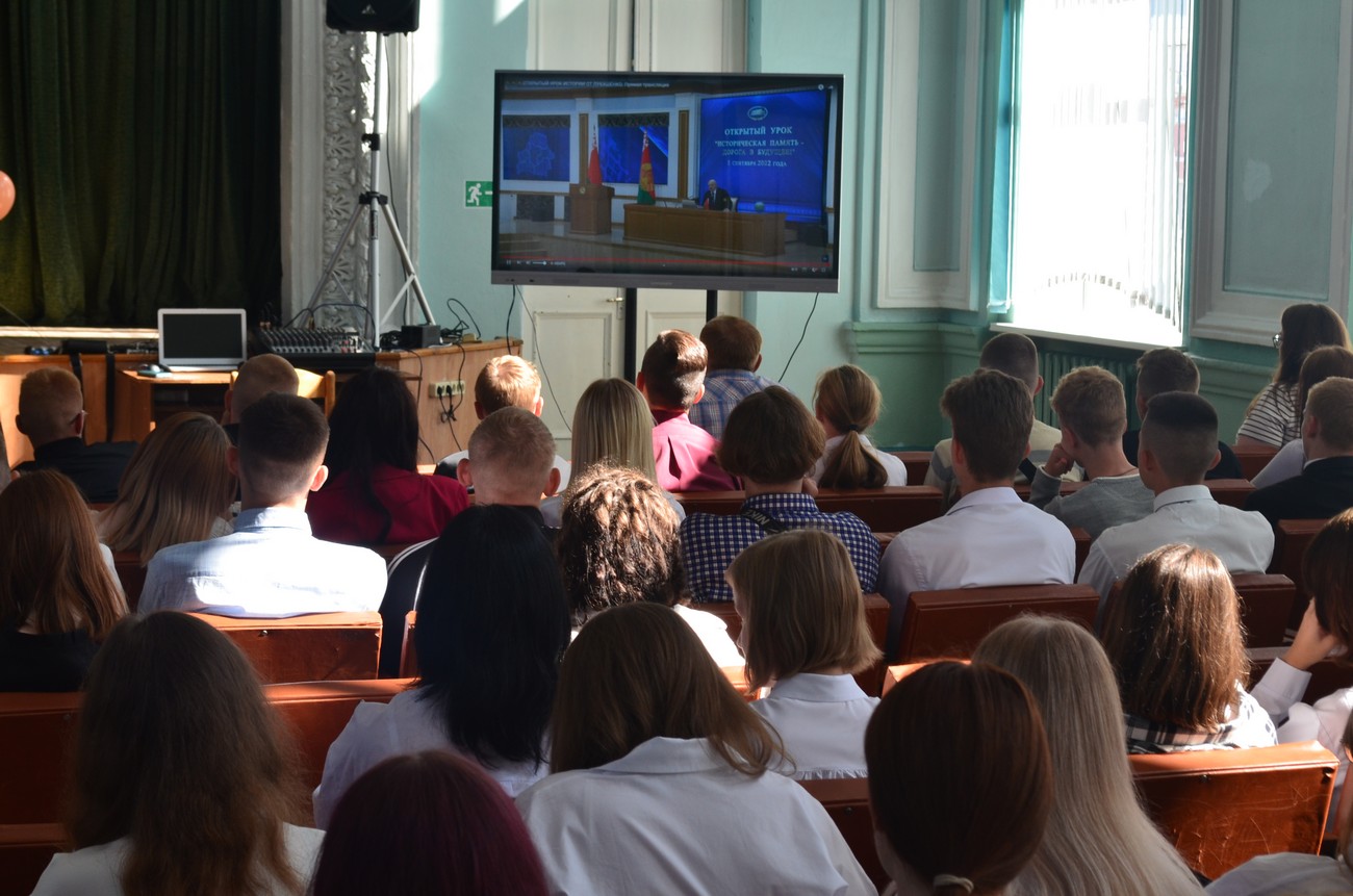 В этот день во всех учебных заведениях Республики Беларусь прошёл первый урок под названием «Историческая память – дорога в будущее», который транслировался по телевидению. А провёл его Президент Беларуси Александр Григорьевич Лукашенко.