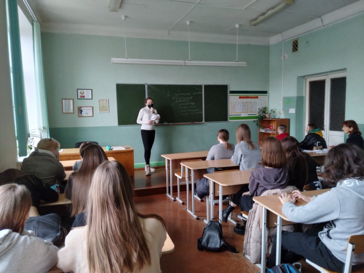 • 2 марта студентка факультета психологии и педагогики ГГУ им.Ф.Скорины Реут Евгения провела интерактивное занятие с девушками группы ОДЛ-12 под названием «Правонарушениям НЕТ», в ходе которого учащимся были разъяснены особенности юридической ответственности за правонарушения, связанные с наркотиками.