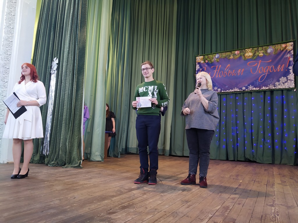 Новогоднюю концертную программу украсили лучшие номера конкурса «А ну-ка, Первокурсник!». Член жюри конкурса, Мурай Яна Александровна, огласила долгожданные результаты конкурса и вручила дипломы победителям. В фойе демонстрировалась выставка творческих работ «Новогодний серпантин».