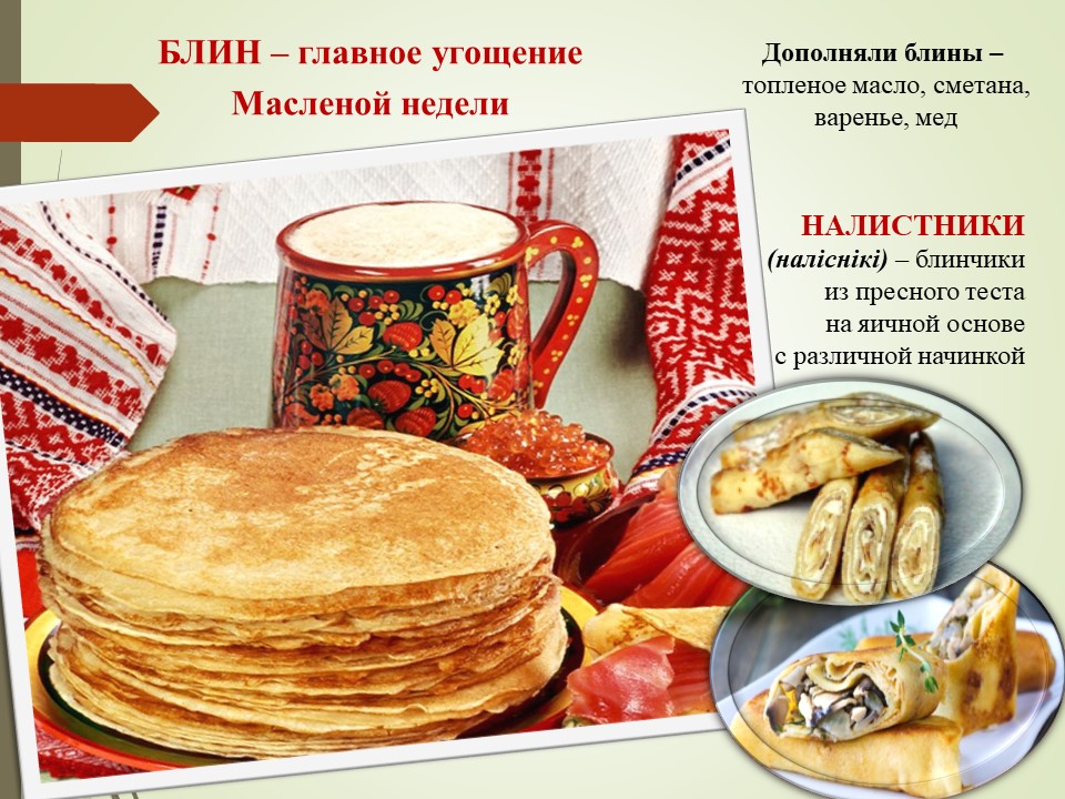 Еще один из любимых обрядовых праздников у белорусов – масленица, является многодневным народным праздником проводов зимы и встречи весны. Ярмарки, народные гуляния, вкуснейшие блины, которые пекли всю неделю, сжигание соломенного чучела, как символ уходящей зимы – все это главные элементы праздника, делающие его столь популярным.