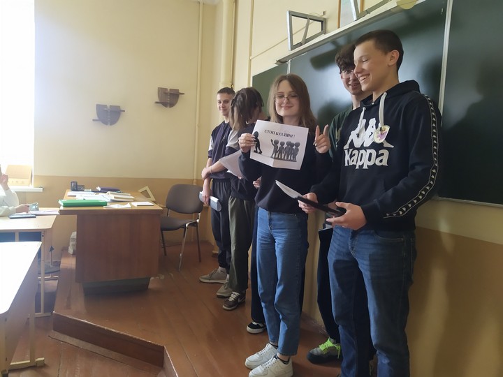 В ходе подготовки к мероприятию, кружковцами были разработаны эмблема и буклет Памятка для несовершеннолетних «Буллинг? Выход есть!», специально подготовленный для индивидуального углубленного ознакомления всех желающих и заинтересованных, который ребята вручили каждой группе.