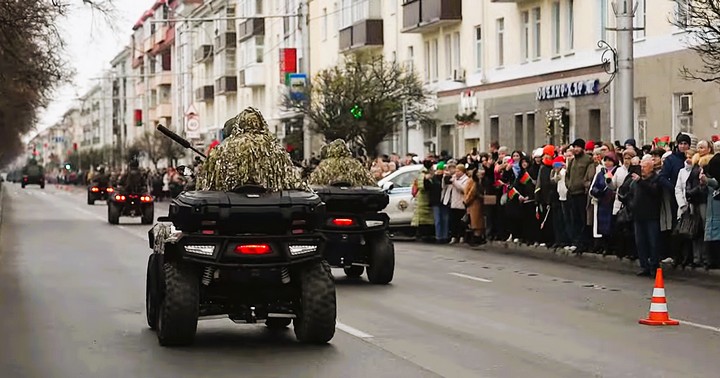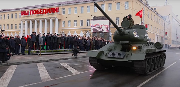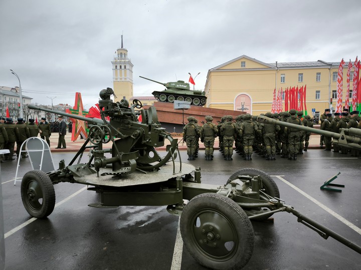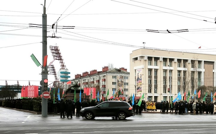 Праздничные мероприятия завершились военным парадом. От площади Восстания по проспекту Победы прошли колонной 33 единицы военной техники и 24 парадных расчёта.
