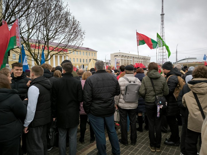 К памятнику воинам-освободителям города участники митинга возложили цветы. Память о погибших в годы Великой Отечественной войны у памятного знака жертвам геноцида белорусского народа почтили минутой молчания.