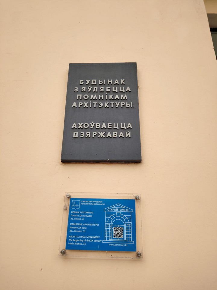 Жилой дом на пр. Ленина, 31 был построен в конце 1920-х гг., автором проекта стал известный архитектор г. Гомеля Станислав Данилович Шабуневский. В годы ВОВ здание было частично разрушено, в 1950 г. восстановлено, во время реконструкции внутренняя планировка была значительно изменена. Здание имеет скатную крышу, отдельные элементы которой видны на фасаде.
