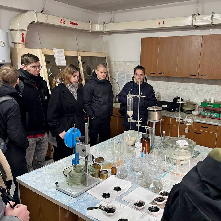 В ходе экскурсии учащиеся ознакомились с оборудованием для испытаний грунтов по определению максимальной плотности, оптимальной влажности, коэффициента фильтрации СоюзДор НИИ, с лабораторной установкой по выпуску битумной эмульсии марки Breining (Германия), с установкой по определению сцепления колеса с дорожным покрытием ИКСп (Россия), с установкой по определению прочности грунтов и дорожной одежды (балка Бенкельмана и штамп диаметром 30 см для определения модуля упругости грунтов и дорожной одежды) и другим лабораторным оборудованием и средствами измерения.
