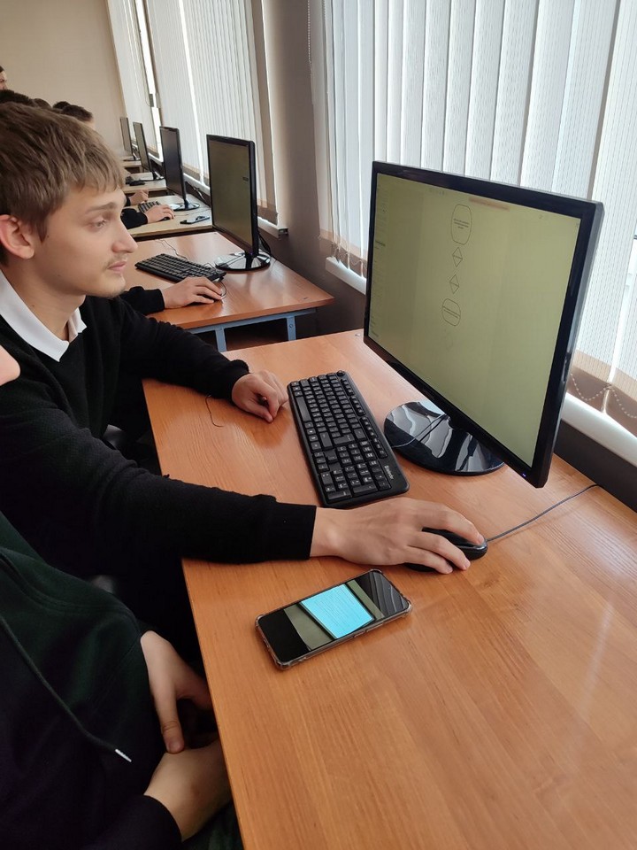 Денис Михалев познакомил учащихся с понятием Flowchart, описал основные составляющие блок-схем процессов и алгоритм их составления. Дал рекомендации по выполнению практического задания учащимися.
