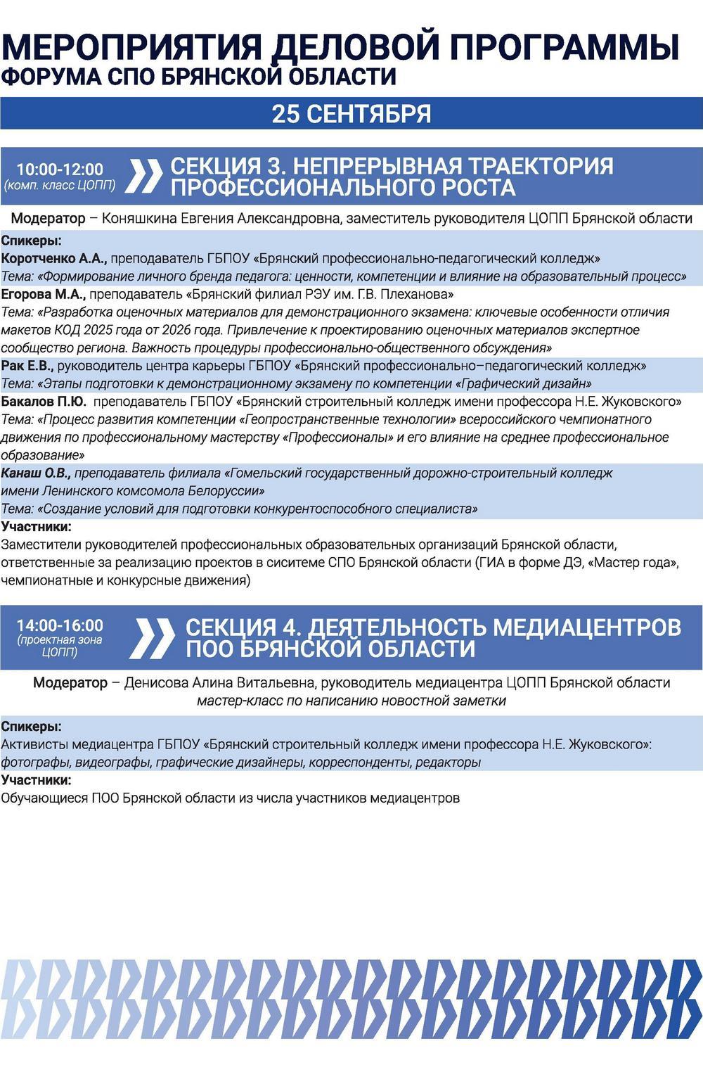 24-25 сентября 2025 года, в рамках международного сотрудничества, преподаватели цикловой комиссии профессионального компонента «Строительство зданий и сооружений» Книжникова В.О., Канаш О.В. и Цыганкова О.А. посетили город Брянск, где приняли участие в работе форума СПО Брянской области, посвященного 85-летию системы среднего профессионального образования.