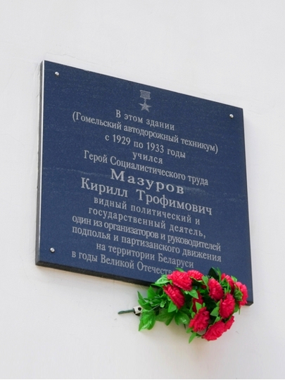 30 апреля 2010 года открытие Мемориального Знака Герою Социалистического труда Кириллу Трофимовичу Мазурову, видному государственному и партийному деятелю, ветерану Великой Отечественной войны, посвятившему всю свою жизнь служению интересам Отечества (выпускник 1933 года)