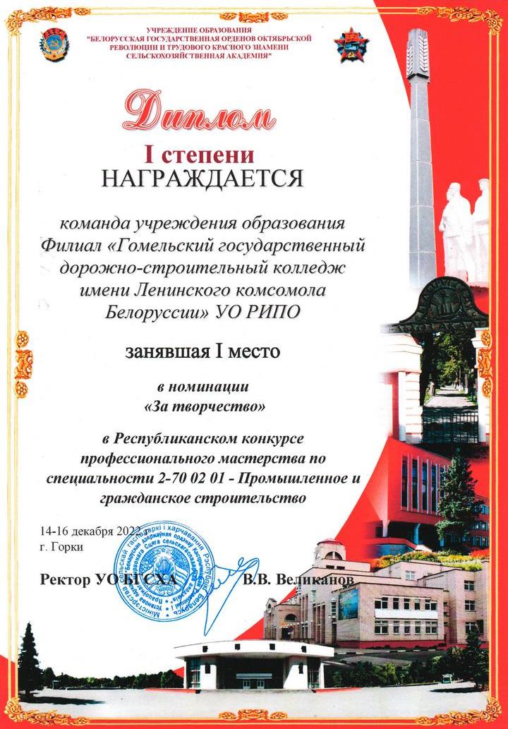 Команду колледжа представляли учащиеся группы ПГС-31: Белый Владимир, Голубкович Владислав, Поляков Станислав. Руководитель: Цыганкова Ольга Александровна.