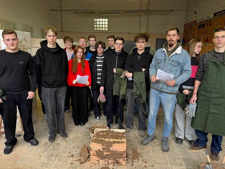 13 ноября 2025 года был проведен практический тур. Практический тур конкурса, по выполнению каменной кладки, проходил в мастерских учебного полигона. Звенья-двойки демонстрировали профессиональные компетенции при выполнении конкурсного задания по возведению каменного столба заданного размера. Работу команд учащихся оценивал мастер производственного обучения А.С.Черняк. Моральную поддержку конкурсантам оказывали учащиеся группы З-21.