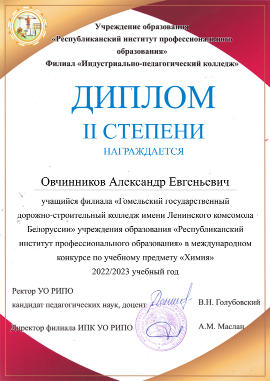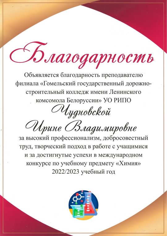 Учащиеся колледжа приняли участие в международном конкурсе по учебному предмету «Химия».